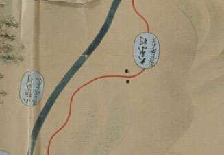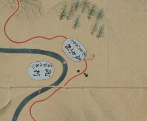 高徳ー大原間には「高徳村中より13町30間(1473m)に小門沢、その沢より5町30間目(600m)に壱里山」とある。天保国絵図にも大原村の手前に両塚が存在していたことが記されている。