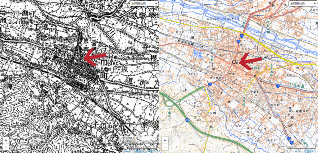 現代人の感覚から言うと狭い感じがするが、当時は今市ICから鬼怒川に抜ける直線の道路が無かったため、適度に広い土地があったのだろう。