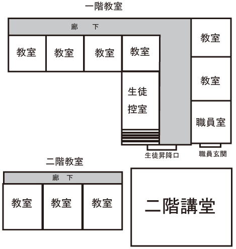 - 明治45年(1912) 今市第二尋常高等小学校及び今市裁縫専修学校を第一尋常高等小学校の敷地に移転(*4)。第二小学校の校舎の一部を移築した。