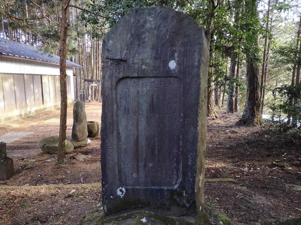 記念碑は昭和28年4月3日、磐裂神社復興祭のときに境内に設置された。