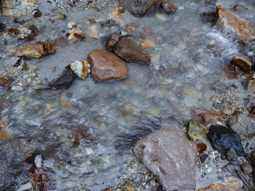 上流は白く軽い石が多い(浅学な為、岩石の名前は忘れてしまった)ため、削られた岩石のために沢の水は白く濁っている。